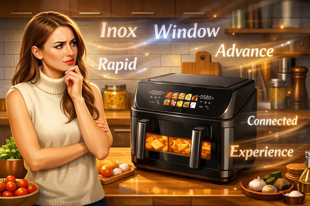 11. Experience / Panoramic – максимально большой панорамный обзор через окно. Можно следить за процессом в реальном времени, не открывая крышку и не теряя тепло. Например, Cecofry Experience 6000 или Cecofry Panoramic 9000. Особенно спасает при выпечке, запекании целой птицы или когда нужно поймать идеальный момент готовности.